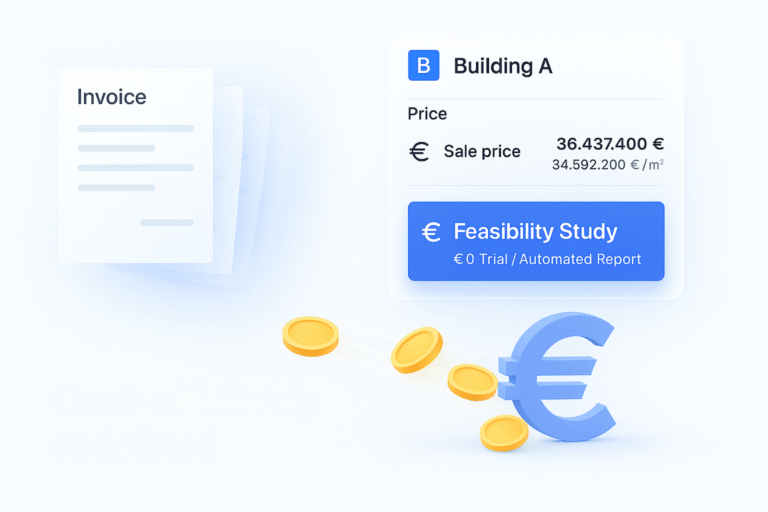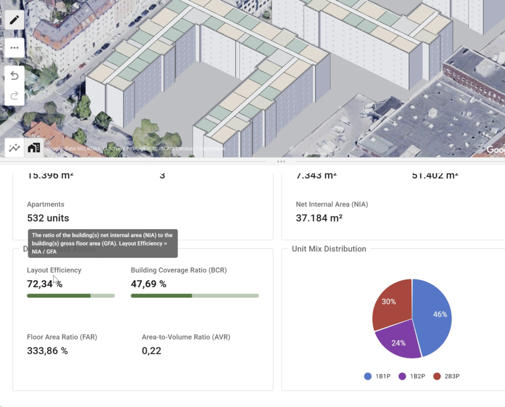 Instant results: what can be built? Floor area, height, usage type – algorithmically verified with current data.